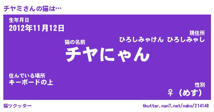| 意味不明あだ名 | 『ペロリンチヤミ』『チヤミフォーエバー』 |