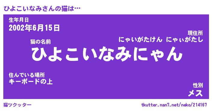| 生年月日? …「くろねこ」 | 8月01日 10:16 |