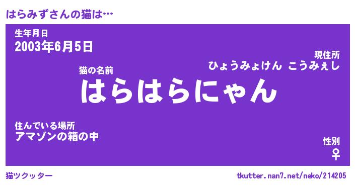 | 意味不明あだ名 | 『ペロリンはらみず』『永久保存はらみず』 |