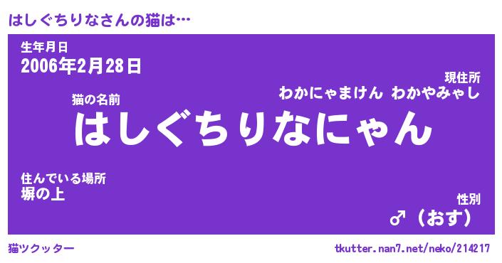 | 生年月日? …「くろねこ」 | 8月01日 10:16 |