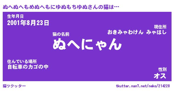 | ポケモン風あだ名 | 『ヌヘチュウ』『ヌヘヌダネ』 |