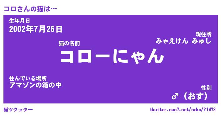 | 生年月日? …「くろねこ」 | 8月01日 10:16 |