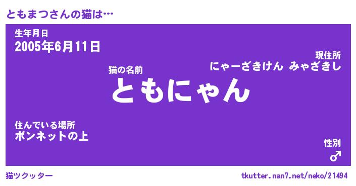 | 意味不明あだ名 | 『ペロリンともまつ』『永久保存ともまつ』 |