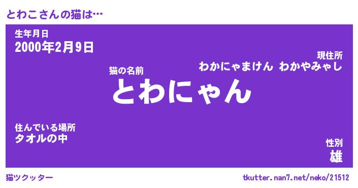 | ポケモン風あだ名 | 『トワチュウ』『トワコダネ』 |