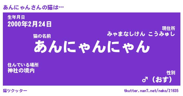 | 肩書あだ名 | 『あんにゃんCEO』『あんにゃん総理大臣』 |