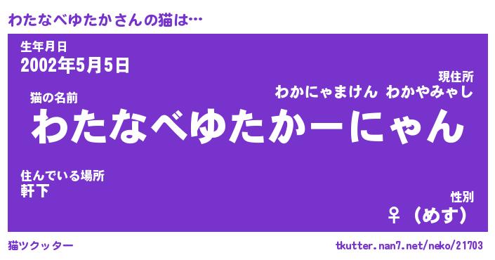 | ポケモン風あだ名 | 『ワタチュウ』『ワタナダネ』 |