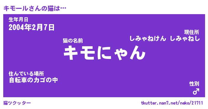 | 男性向けラノベタイトル風あだ名 | 『キモールの憂鬱』 |