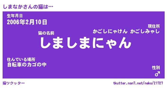 | ファンタジー風あだ名 | 『シマフェル』『エターナルシマナカー』 |