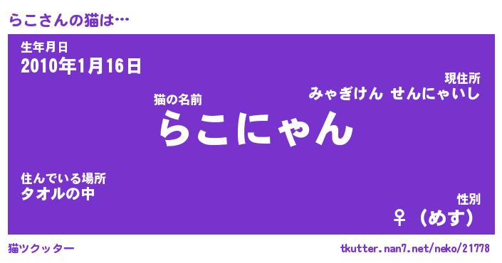 | ファンタジー風あだ名 | 『ラコフェル』『エターナルラコー』 |