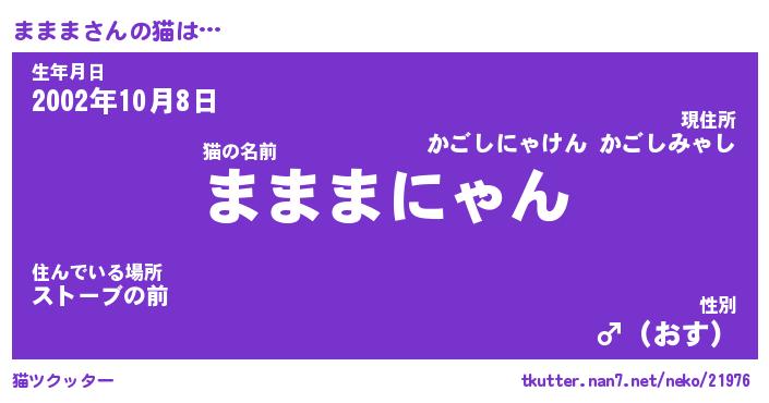 | 男性向けラノベタイトル風あだ名 | 『まままの憂鬱』 |