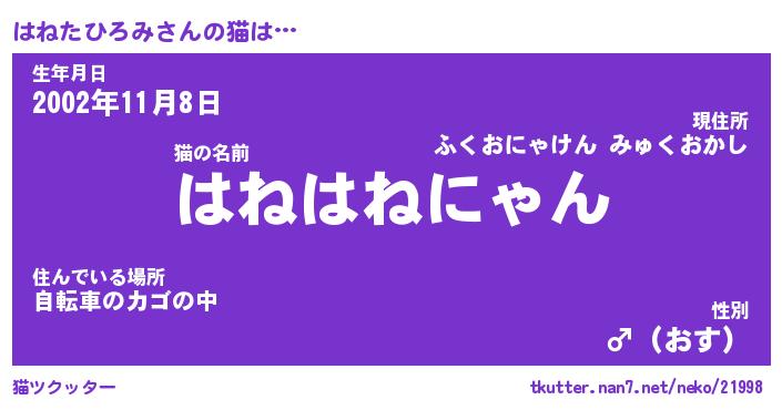 | ポケモン風あだ名 | 『ハネチュウ』『ハネタダネ』 |