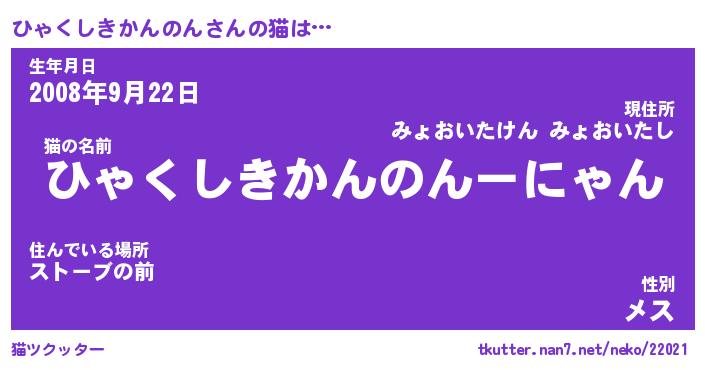 | ツイッター | ひゃくしきかんのんさんのツイッターID『neet_nyan』 |