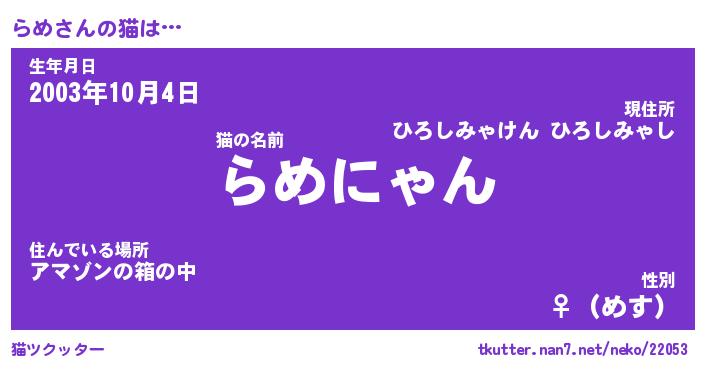 | ヘコむあだ名 | 『らめにー』『牛乳』『らめっぺ』 |