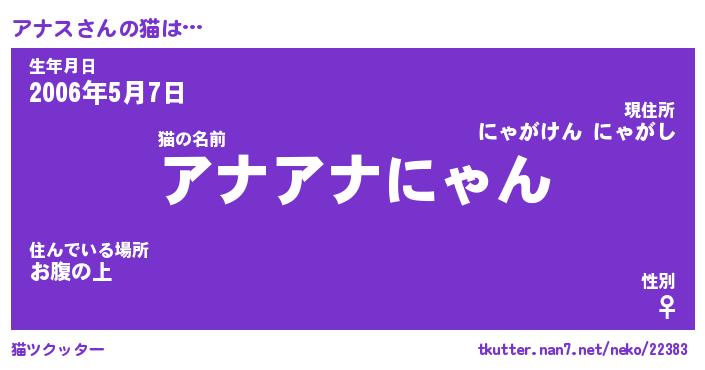 | ポケモン風あだ名 | 『アナチュウ』『アナスダネ』 |
