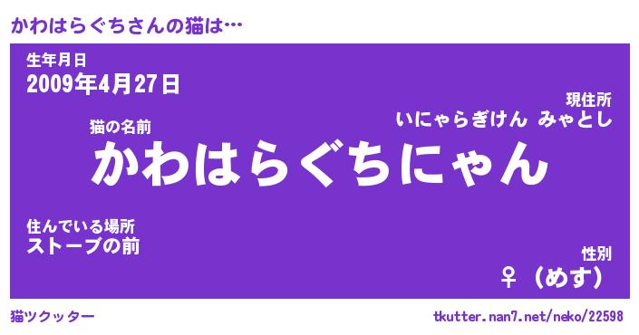 | 女子向けラノベタイトル風あだ名 | 『(仮)かわはらぐちのやんごとなき事情』 |