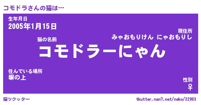 | 意味不明あだ名 | 『ペロリンコモドラ』『永久保存コモドラ』 |