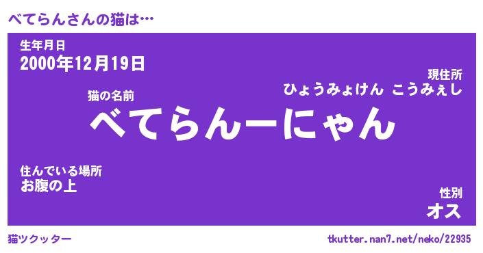 | 意味不明あだ名 | 『ペロリンべてらん』『永久保存べてらん』 |