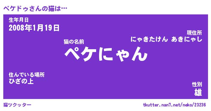| ヘコむあだ名 | 『ペケもー』『なまこ酢』『ペケを』 |