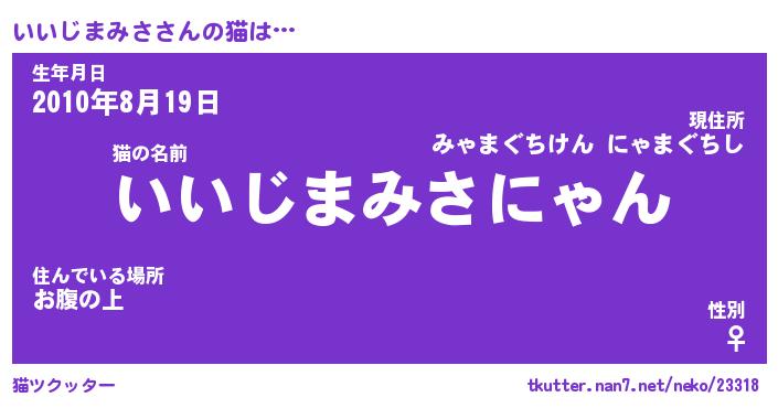| 男性向けラノベタイトル風あだ名 | 『いいじまみさの憂鬱』 |