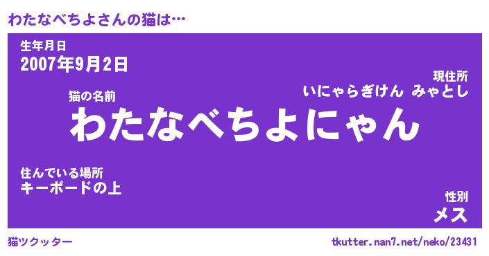 | 2回繰り返すあだ名 | 『わたわた』『わわたた』『にたにた』 |