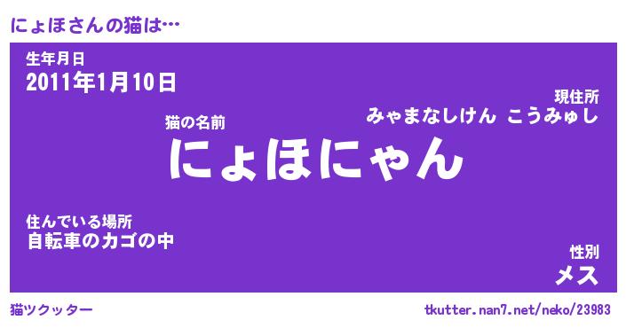 | 意味不明あだ名 | 『ペロリンにょほ』『にょほフォーエバー』 |