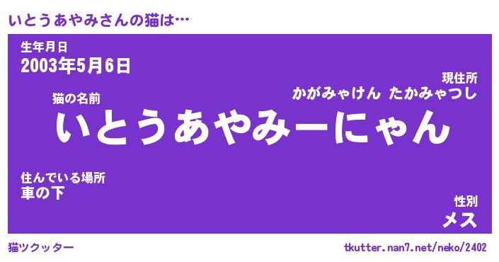 | 自動車の名前っぽいあだ名 | 『イトティマ』『イクア』『イント』 |