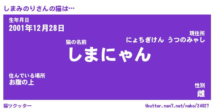 | ファンタジー風あだ名 | 『シマフェル』『エターナルシマミノリー』 |