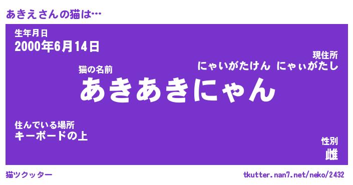 | ヘコむあだ名 | 『あきにゅー』『つくし』『あき太郎』 |