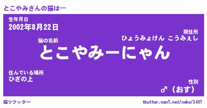 | 意味不明あだ名 | 『ペロリンとこやみ』『永久保存とこやみ』 |
