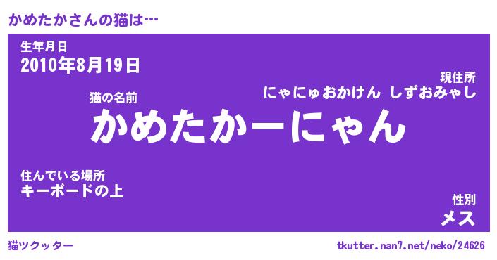 | 意味不明あだ名 | 『ペロリンかめたか』『永久保存かめたか』 |