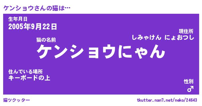 | ポケモン風あだ名 | 『ケンチュウ』『ケンシダネ』 |