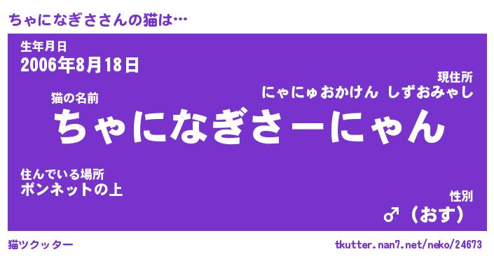 | 男性向けラノベタイトル風あだ名 | 『チャニナギサアートオンライン』 |
