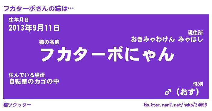 | 男性向けラノベタイトル風あだ名 | 『フカターボの憂鬱』 |