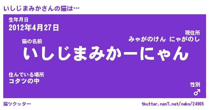 | ヒーロー風カッコイイあだ名 | 『スーパーイシジマミカ』『魔戒騎士イシ』 |