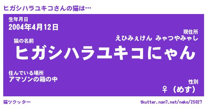 | 意味不明あだ名 | 『ペロリンヒガシハラユキコ』 |