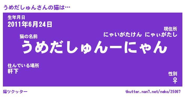 | ヘコむあだ名 | 『うめにゅー』『豆乳』『うめっ子』 |