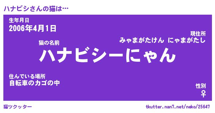 | 意味不明あだ名 | 『ペロリンハナビシ』『永久保存ハナビシ』 |