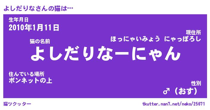 | ツイッター | よしだりなさんのツイッターID『fukuyoka_idle』 |