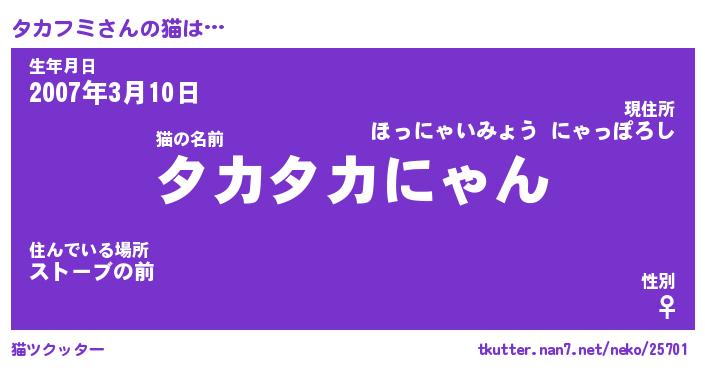 | 2回繰り返すあだ名 | 『タカタカ』『タタカカ』『ぬめぬめ』 |