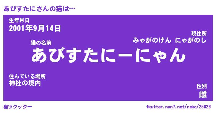 | 恥ずかしいあだ名 | 『プリティーあびすたに』『あびっちょ』 |
