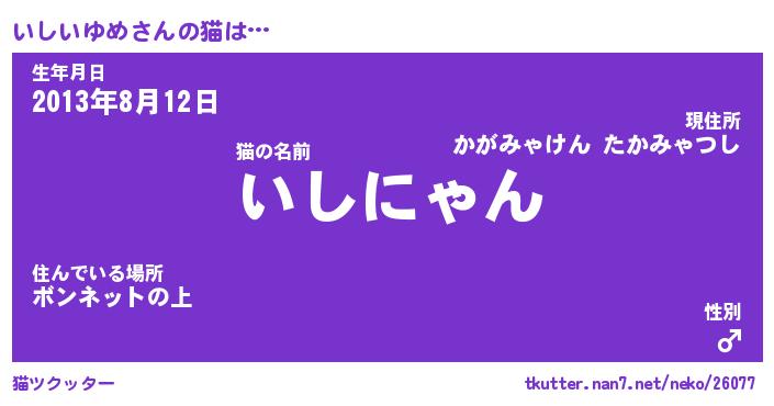 | ファンタジー風あだ名 | 『イシフェル』『エターナルイシイユメー』 |
