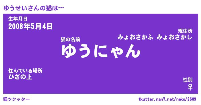 | ポケモン風あだ名 | 『ユウチュウ』『ユウセダネ』 |
