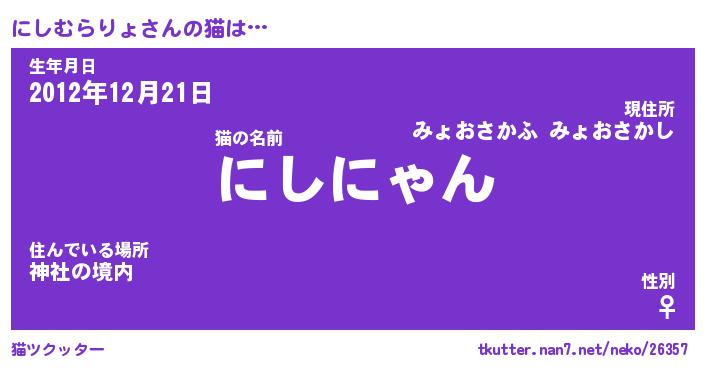 | ポケモン風あだ名 | 『ニシチュウ』『ニシムダネ』 |