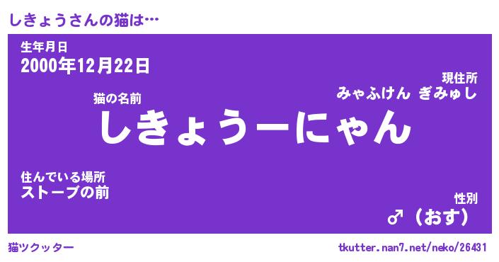 | 意味不明あだ名 | 『ペロリンしきょう』『永久保存しきょう』 |