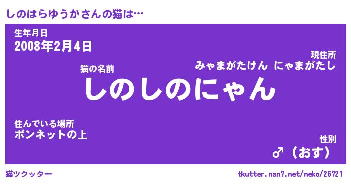 | ツイッター | しのはらゆうかさんのツイッターID『namakemono_star』 |
