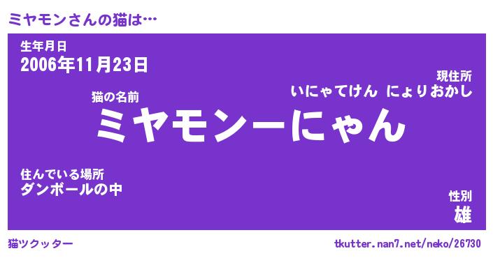 | 意味不明あだ名 | 『ペロリンミヤモン』『永久保存ミヤモン』 |