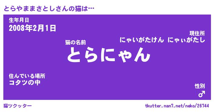 | 2回繰り返すあだ名 | 『とらとら』『ととらら』『ぬらぬら』 |