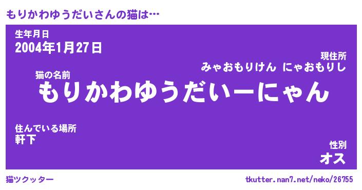 | 肩書あだ名 | 『もりかわゆうだい御曹司』 |
