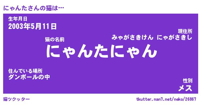 | 意味不明あだ名 | 『ペロリンにゃんた』『永久保存にゃんた』 |