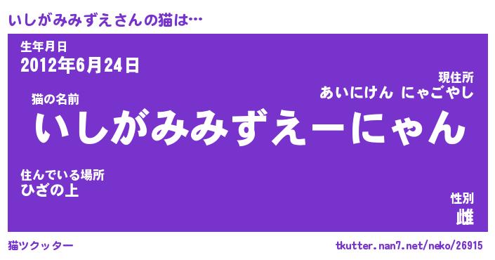 | 恥ずかしいあだ名 | 『プリティーいしがみみずえ』『いしちん』 |